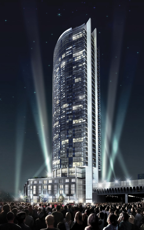 Rendering of the proposed Backstage on the Esplanade condo tower; real estate brokers packed a sales office this week for a sneak peek at the project