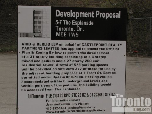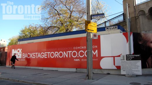 Below are some photos of the Backstage location, its sales office, and its original development proposal signage on The Esplanade.