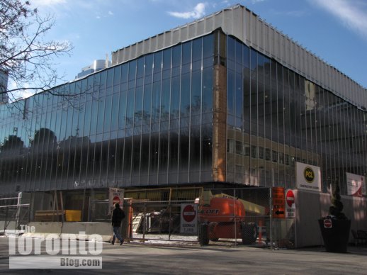 I’m glad to see the drab old building getting a complete overhaul, and I enjoy how the gallery’s shiny glass skin reflects nearby buildings on the Ryerson campus, including the clocktower at Kerr Hall. Unfortunately, most of the Rye U students don’t even seem to notice the gallery taking shape; they’re too busy fiddling with their smart phones as they rush past on their way to and from classes and coffee shops. But I’m sure the new school will catch their attention once the construction hoarding and fences come down, and the university joins the ranks of “the top international centres for photography and related disciplines.”