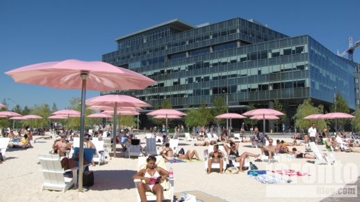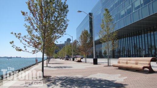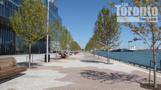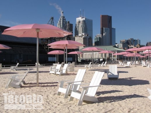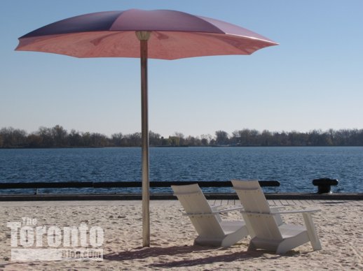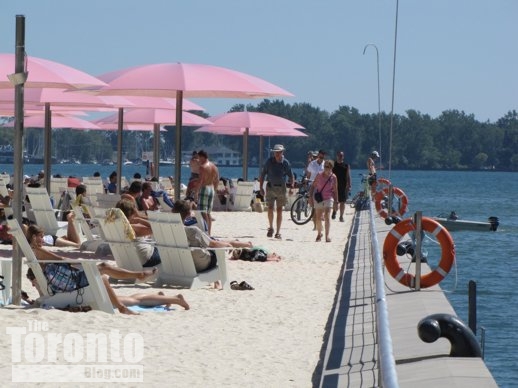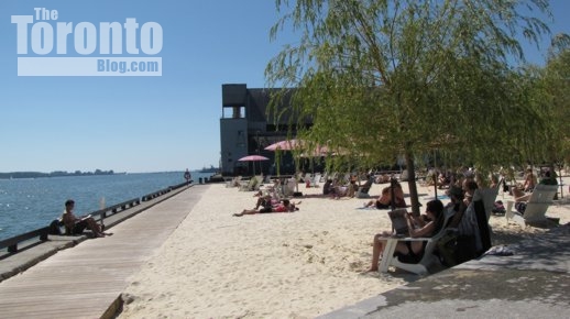 To help you imagine that you’re enjoying warm sun and sand beside a wide expanse of appealing blue water, here’s some photos of the new beach and lakeside promenade that opened next to the Corus Entertainment building at the foot of Jarvis Street last summer.