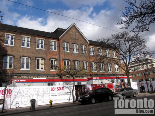 This historic brick building, seen on March 11 2010, will be restored and connected to the sleek glass Fashion House Condos tower