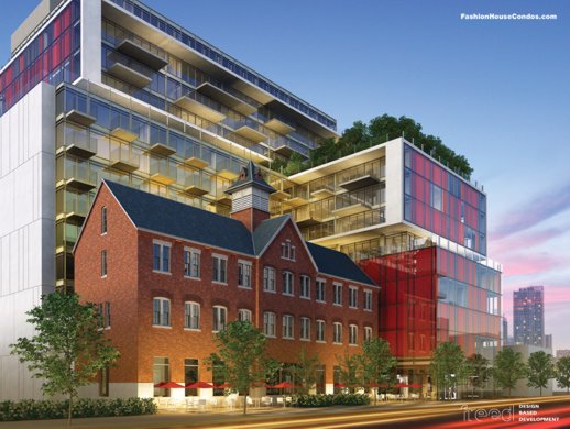Fashion House seems destined to become an address that will be easy to find and hard to miss, thanks to the “dashing lipstick-red window coverings on the building’s exteriors (all of which shine a crisp, clean white inside)” that will complete the building’s “fashion-forward design statement.” (That’s assuming red remains a hot fashion colour by the time construction concludes.)