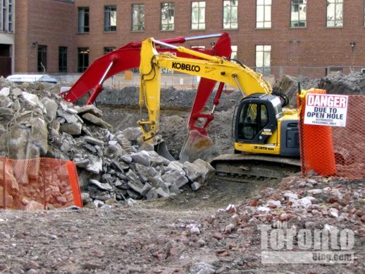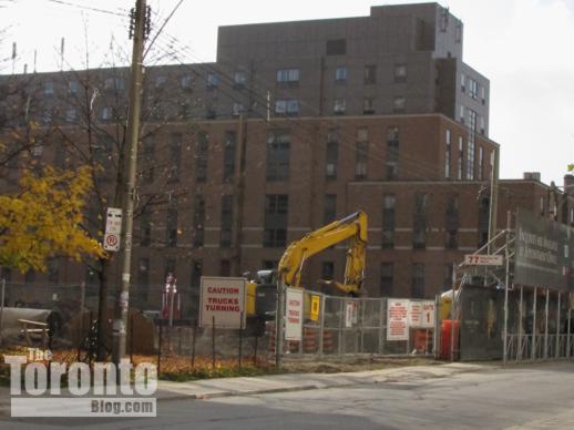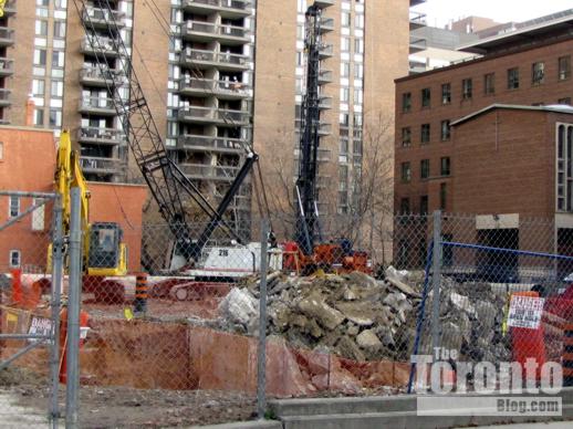 November 22 2009: Construction site viewed from the east, on Charles Street. The building to the west of the site is U of T’s Rowell Jackman Hall.