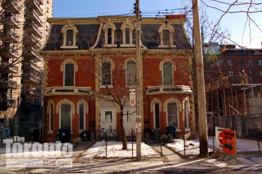 77 Charles’s easterly neighbours are two semidetached brick houses built in 1885. They are the Charles Bird House at 63 Charles, left, and the John Briggs House at Number 65. To their left are the Bay Charles apartment towers.