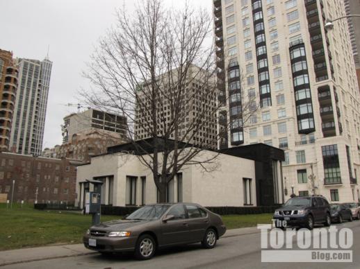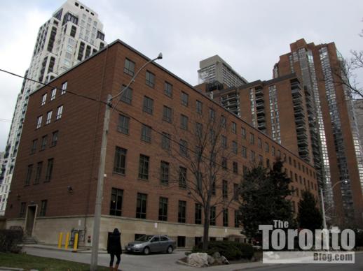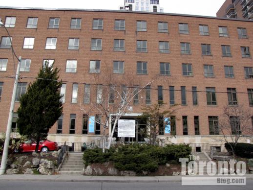January 29 2011: The driveway in the foreground leads into the underground parking garage of Rowell Jackman Hall next door to 77 Charles