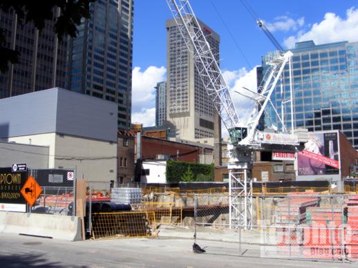 August 6 2008: The Uptown’s crane stands only two storeys above street level during construction of the luxury condo tower’s foundation.