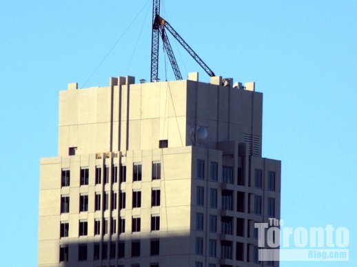 From my balcony, I have watched cranes working on The Uptown’s roof since the late fall of 2009, and during some of those 18 months The Uptown’s crane stood higher than any other structure in the Yonge & Bloor area. It became such a familiar sight on the skyline, I was bound to miss its presence.