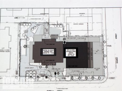 Big addition: A 26-storey rental apartment building at 66 Isabella Street could get a 32-floor addition to its east flank if the City approves an unusual mixed-use residential development proposal for the north end of the Church Wellesley Village area.