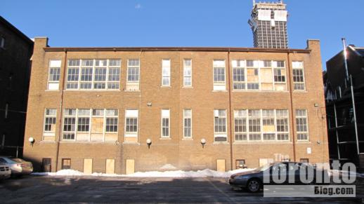 January 9 2011: The St Basil’s Schoolhouse dates from 1928. Access to a large parking lot behind the building is through a laneway on the left side of the school.