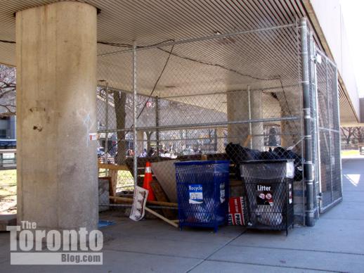 April 9 2011: Barricades stacked under the west walkway