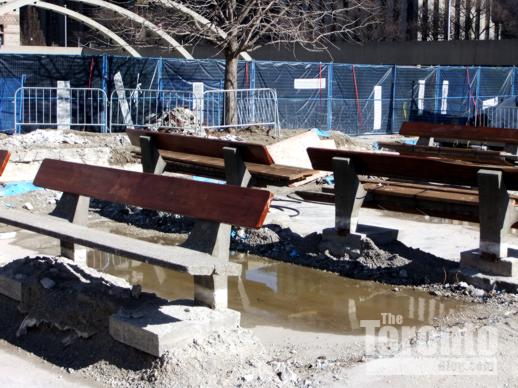 April 9 2011: Park benches near the Queen Street entrance to the Square