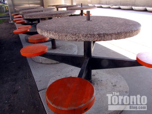 When I describe the Square as “dumpy,” I don’t mean the messy work areas that, once finished, will immensely improve the look and feel of the entire plaza. I’m speaking about the Square in general, which City Hall has neglected and mistreated for years. I’ve overheard more than a few visitors comment that the plaza looks scruffy, and some out-of-town colleagues have made similar observations. I felt embarrassed when a very-well-travelled friend from South America told me several years ago that he thought Nathan Phillips Square is the “scuzziest” city square he’s seen anywhere in the world. I couldn’t agree more. Whenever I walk through the Square, it reminds me of messy backyards where loads of junk are scattered or stacked all over the place because the homeowners either couldn’t find appropriate places to store it out of sight, or just couldn’t be bothered getting rid of it. The big difference is that Nathan Phillips Square is Toronto’s front yard. And that yard not only has pathetic landscaping in many places, it’s cluttered with a lot of crap, including dilapidated, decades-old benches and picnic tables that look tacky (I really hope those are going to be replaced; the revitalization project website mentions new furniture for the elevated walkways that enclose the Square, but says nothing about seating for the ground level.) Moreover, the Square has become an ad hoc storage area for crowd control barriers, construction materials, and equipment. C’mon, Toronto. If you want to be a world-class city, start acting like one. Clean up your front yard and stop using it for storage. The 1.5 million people who visit the Square each year deserve better.