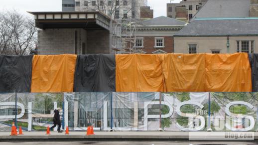March 22 2011: Orange and black tarps draped over the snack bar construction