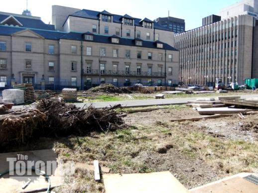 April 9 2011: The west lawn location for the Peace Garden and urban forest. The building to the west is historic Osgoode Hall.