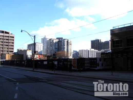 April 17 2009: Northeast view from Breadalbane Street. The Casa condo tower is seen under construction on Charles Street to the north.