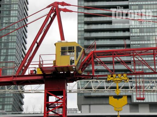 April 21 2011: A red and yellow crane works the east side of the ÏCE Condos site