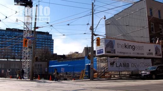 April 30 2011:  A view of The King East construction site from the southeast corner of King & Parliament Streets