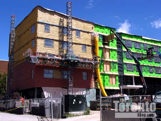… but by July 13 2011, the green is beginning to disappear as insulation and cladding is applied to the building’s exterior