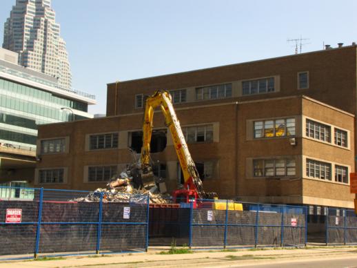 July 17 2011: Demolition machine working beside the west wing of 90 Harbour