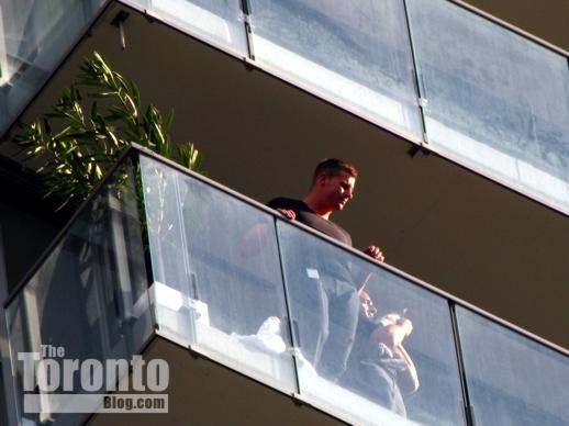 Over at the northeast corner of Bay and Grosvenor, two security guards were busy looking up and warning people to get off their balconies and go back inside their condos. “Get inside! Get off the balcony! Get away from the balcony!” one of the guards screamed at a woman leaning over a balcony about 15 floors high.