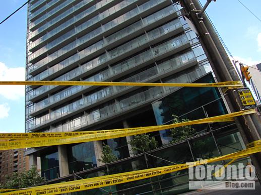 July 21 2011: Police tape blocks access to Grosvenor Street outside the Murano North condo tower at Bay & Grosvenor Streets this evening