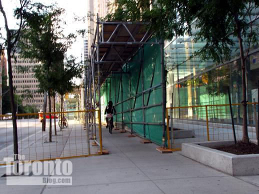 July 21 2011: Scaffolding and barricades along the Bay Street sidewalk outside the Murano condo towers