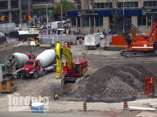 September 27 2011: Looking south across the One Bloor site. The tower will soar above the 46-storey Casa condominium at rear left.