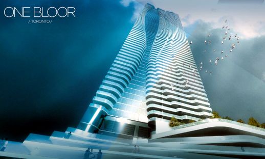 A project of Great Gulf Homes, One Bloor was designed by Hariri Pontarini Architects of Toronto. Information about the building site and design, along with a selection of tower renderings and illustrations, is available at the One Bloor East profile page on the Hariri Pontarini website.