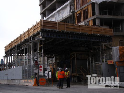 January 6 2012: A huge platform has been built above the construction staging area at the base of the tower on The Esplanade