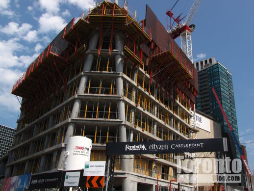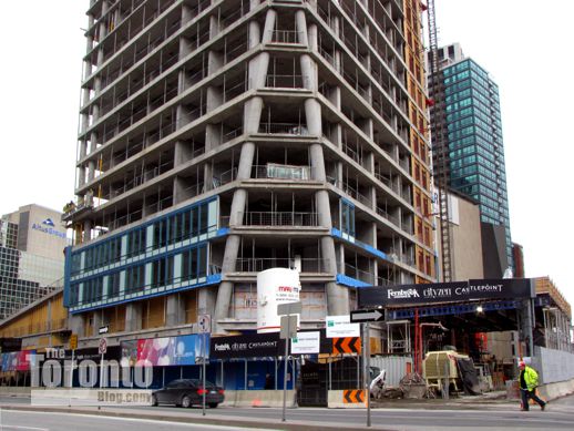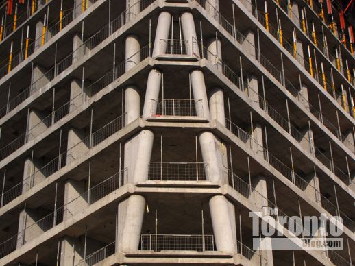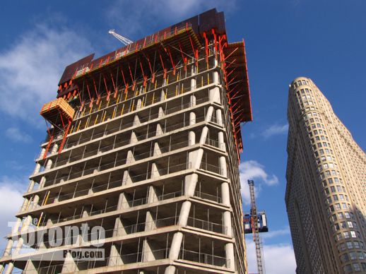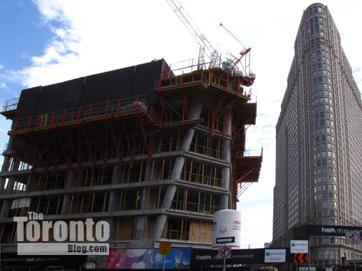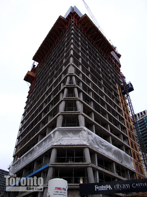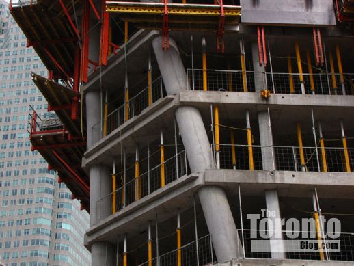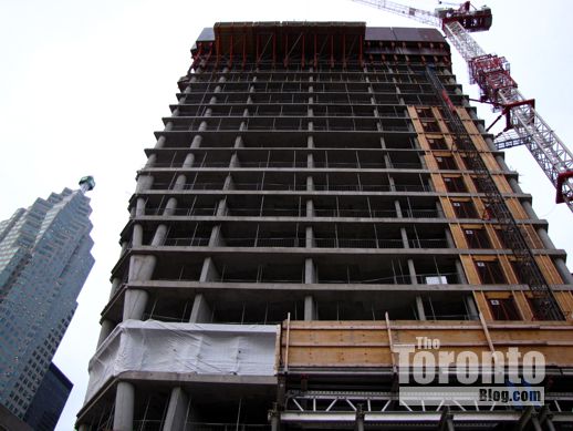 November 17 2011: A view of the tower’s A-shaped southwest corner, and its condo highrise neighbour across the street at 25 The Esplanade