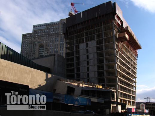 January 6 2012: The L Tower viewed from outside the Hotel Novotel Toronto Centre at 45 The Esplanade, left
