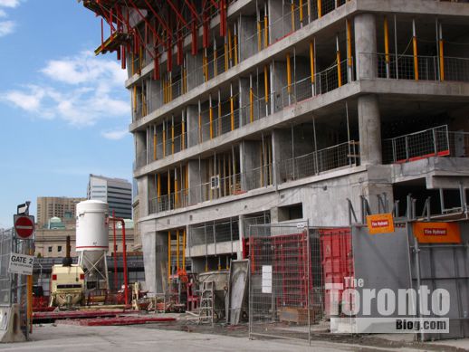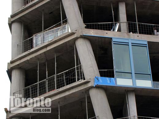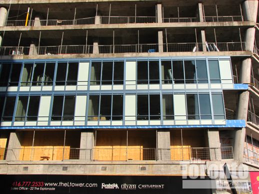 January 31 2012: Windows and cladding have been installed on two floors on the tower’s west side above Yonge Street