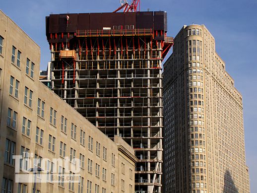 Below is an artistic illustration, from The L Tower project website, suggesting how the completed building will look, soaring high above the Sony Centre for the Performing Arts. That’s followed by some photos I’ve shot of construction progress since August, along with two short videoclips.