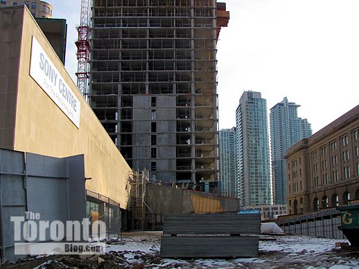 January 31 2012: Looking south from Front Street across what will become a public plaza on the north side of the tower, next to the Sony Centre