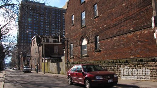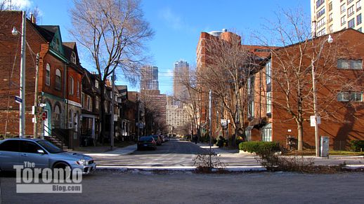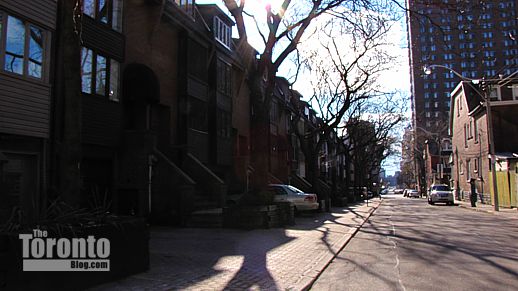 February 5 2012: Homes along the west side of Mutual Street near the proposed 50-storey condo tower and townhouse complex