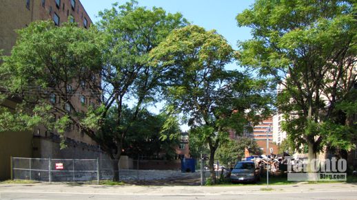 August 30 2012: Looking west from Allan Gardens shortly after the two low-rise buildings at 308 Jarvis Street and 225 Mutual Street were demolished