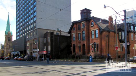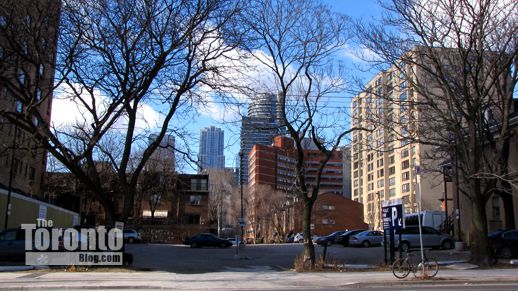 February 5 2012: A view toward the development site, left, from the northeast corner of Jarvis and Carlton Streets
