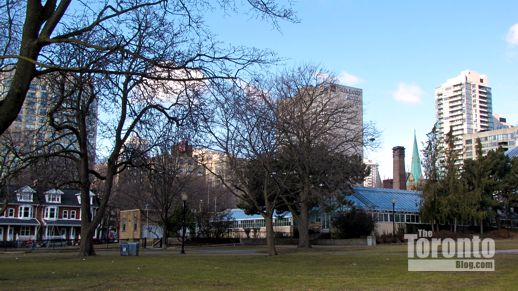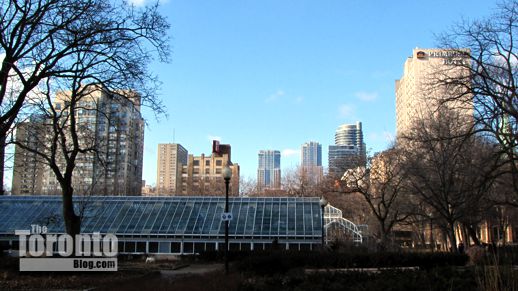 February 5 2012: Looking toward the proposed condo tower site on Jarvis Street, from the west section of Allan Gardens