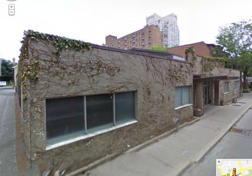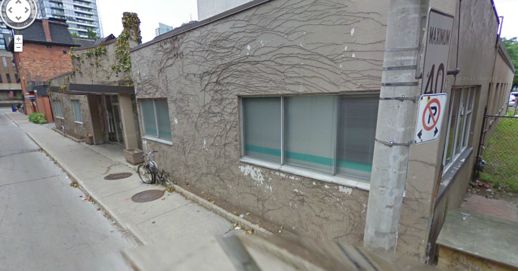 This Google Street View image shows the former 1-storey building at 225 Mutual Street, looking north along Mutual toward Carlton Street