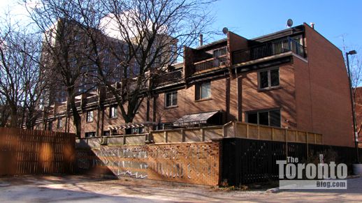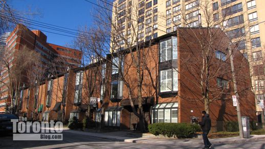 February 5 2012: The proposed condo tower would rise behind this row of townhouses on the east side of Mutual Street