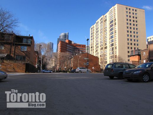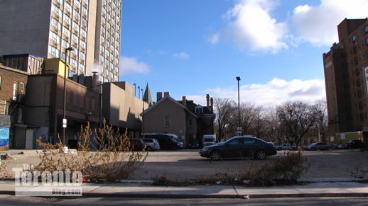 February 5 2012: Looking east from Mutual Street across the site for the proposed 50-storey condo tower. 5 townhouses are proposed for this side of the project.