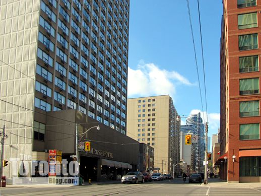February 5 2012: Jarvis Street view of Carlton Street, looking west past The Best Western Primrose Hotel