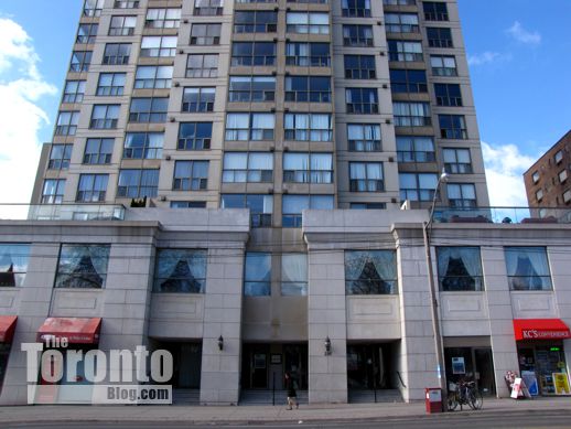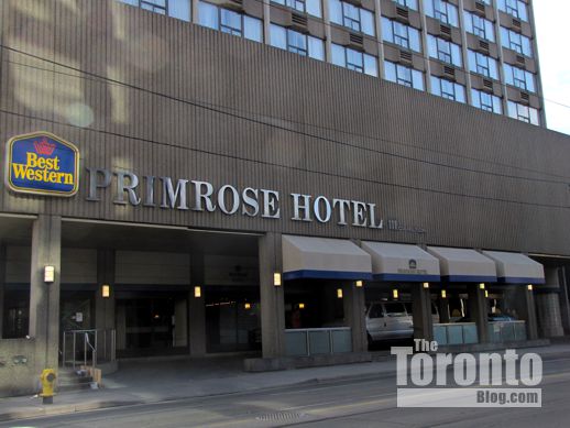 February 5 2012: The Best Western Primrose Hotel entrance at 111 Carlton Street. A number of floors in the hotel are operated as residences for students attending downtown colleges and universities. I’ve heard that the building could be targeted for conversion into a condominium, or be torn down and replaced with a completely new condo highrise, if Toronto’s real estate boom continues.