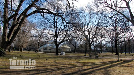 February 5 2012: Another view toward the proposed condo tower site, this time from the south-central section of park along Gerrard Street