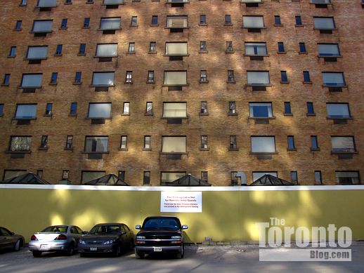 Most of the site proposed for redevelopment is vacant land, presently being operated as a pay parking lot (apparently without a licence or any kind of legal authorization from the city). Two buildings that once occupied parts of the property — a 2-storey office structure at 308 Jarvis Street, and a 1-storey commercial facility at 225 Mutual Street — were demolished during July and August 2010. From 1979 to 2005, the Mutual Street building was home to McClear Place, a digital recording and post-production studio. According to a brief historical outline on the McClear Place website, some of the famous acts who made recordings in the studio “included Rosemary Clooney, Mel Torme, B.T.O., The Who, Gordon Lightfoot, Anne Murray, Ringo Starr, George Carlin, Steve Winwood, Chubby Checker, Rush, James Brown, Aretha Franklin, Wilson Picket, and Mark Knopfler.”