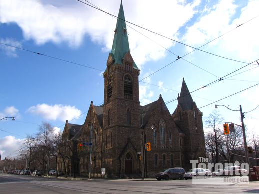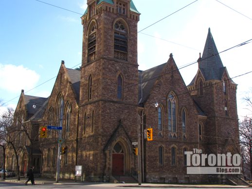February 5 2012: The Latvian St Andrews Evangelical Lutheran Church at the southeast corner of Jarvis & Carlton Streets, next to Allan Gardens, stands across Jarvis Street from the proposed condo tower