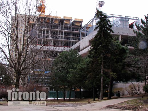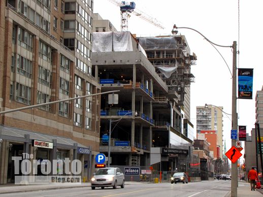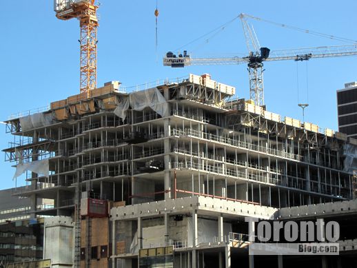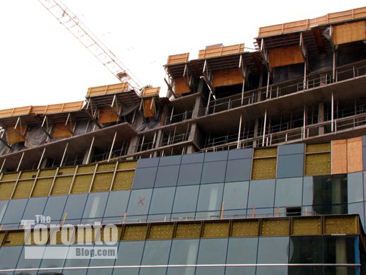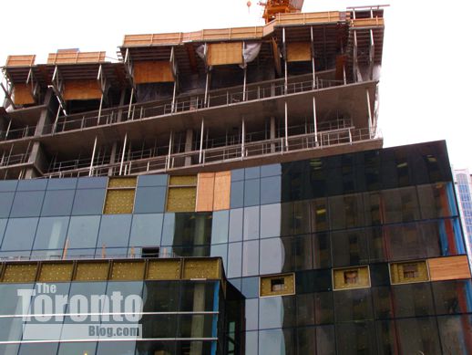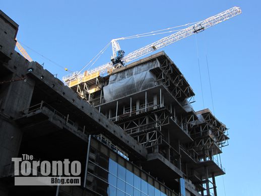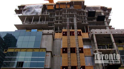 January 29 2012: Construction forms extend from the condo floors being built on the east side of the tower above Yonge Street