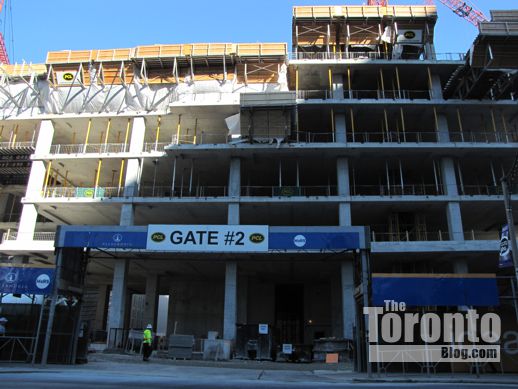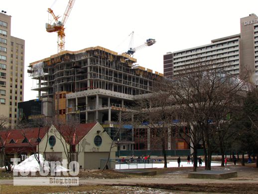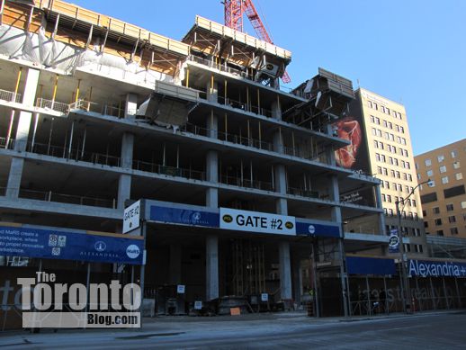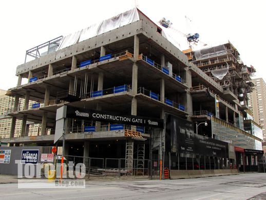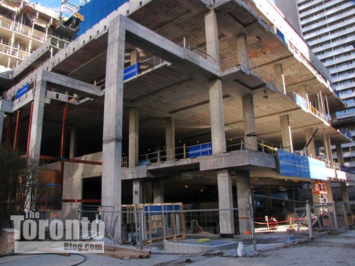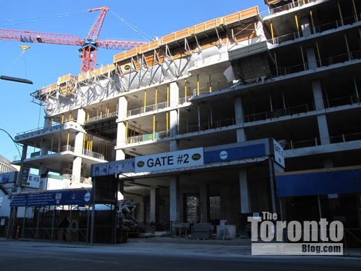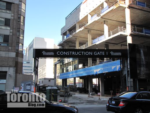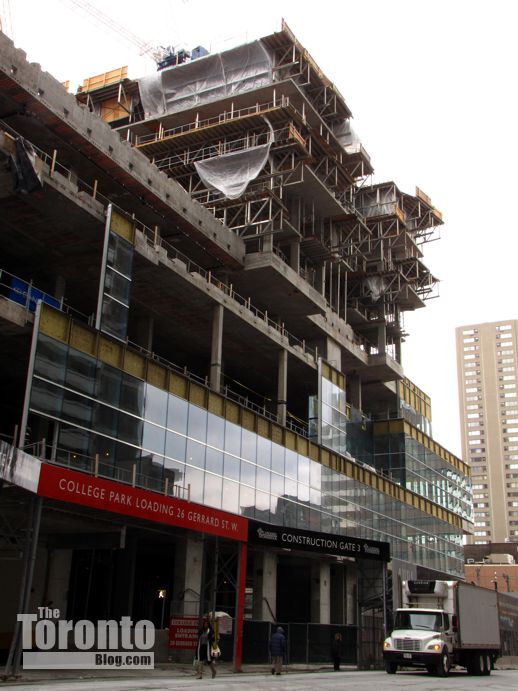 February 9 2012: The southwest corner of the podium, next to the Liberties on Bay condo complex at 44 Gerrard Street West