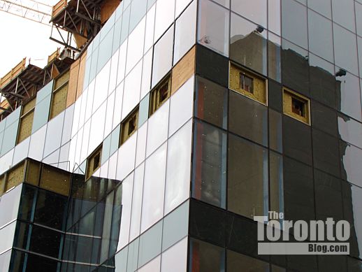 February 9 2012:Aura is now visible to people walking and driving west on Gerrard Street. The view here is from the southwest corner of Gerrard & Church Streets, next to the Ryerson University campus.