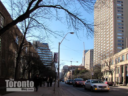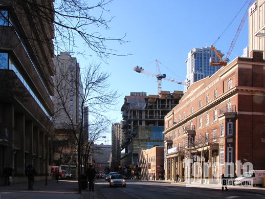 January 29 2012: Another street-level view of Aura from the west, this time from the intersection of Gerrard and Bay Streets